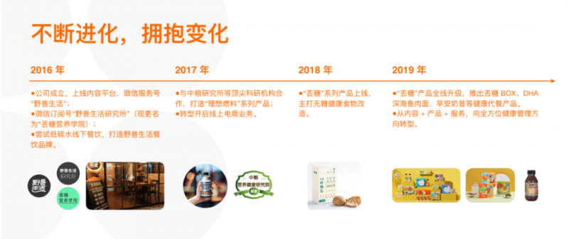 低碳水饮食具有减脂、平稳血糖甚至逆转二型糖尿病等多种益处。当然,最容易打动消费者的还是减脂或者说是体重管理。野兽生活作为国内首家低碳水健康食品企业,目前旗下包括两个品牌:主打低碳水生酮营养功能性食品的“理想燃料”以及主打日常食物低碳水改造、提供好吃不胖食品的“丢糖”,这也反映了野兽生活正由小众功能+向大众健康+转型。