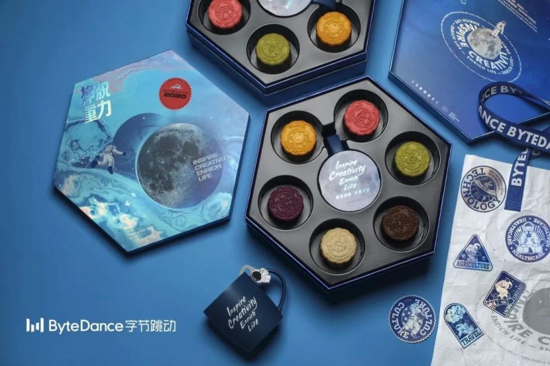字节跳动推出了挣脱重力月饼礼盒,礼盒外包装采用太空元素进行设计,科技感满满。包含6个不同口味。