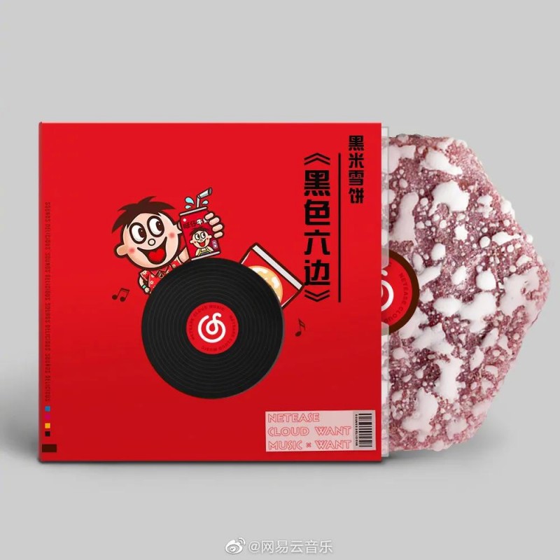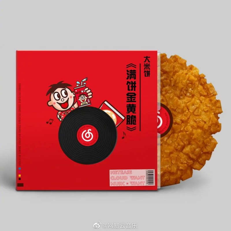 有意思的是,网易云将旺旺雪饼做成了黑胶唱片的形状,还根据旺旺每款产品的特色,起了个很文艺的歌名: