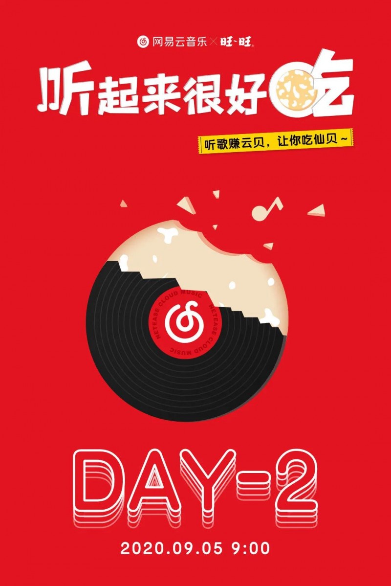 为了宣传线上活动,旺旺×网易云音乐推出特别单曲&视频《听起来很好吃》,在发布视频前,旺旺旺旺发布了3张倒计时海报,海报将旺旺仙贝和网易云的音乐元素进行结合,体现出#听起来很好吃#的主题,为视频预热。