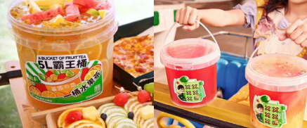 比如益禾堂的真的甜西瓜桶,售价在13元;书亦烧仙草的“一桶水果茶”售价15元,与普通装水果茶比起来,性价比很高,对消费者也十分有吸引力。