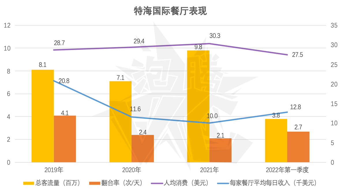 2018年,海底捞赴港上市。此后股价一路高歌猛进,在2021年2月到达历史最高85.8港元/股。但好景不长,紧跟其后的是断崖式地下跌,截止发稿日,海底捞报价16.02港元/股,下跌81%,市值严重缩水。 资料来源:香港交易所 2020年,由于错判疫情形式,海底捞的飞速扩张带来的是净利润约90%的暴跌。2021年11月,海底捞启动“啄木鸟计划”,旨在通过关闭业绩未达标的门店、调整产品策略、提升管理水平等方式改善经营。计划启动后,海底捞关闭260家餐厅,32家餐厅停业修整,伴随着翻台率逐步提升,“啄木鸟计划”初显成效。 在国内市场遭受重挫的情况下,海底捞将目光投向了海外。 特海国际成立于2022年5月,其在拆分前属于海底捞附属公司,此次拆分上市后,将成为两个独立个体,特海国际负责境外业务。 拆分对于海底捞来说并不新鲜,早在2007年,张勇就将蜀海供应链拆分出,而后颐海国际、海鸿达、蜀韵东方等也由部门业务分离成独立公司,如今海底捞的产业链覆盖食品、咨询和科技等不同行业。 图片根据公开资料整理 在招股书中,海底捞国际表示单独分拆出特海国际是为了各自业务更好地分配资源,并且能够获得独立的上市地位以及独立的募资平台。 回顾2016年上市的颐海国际,由于其与海底捞高度绑定,拆分后两家企业仍旧可以用休戚与共来形容。不过,在海底捞大涨又大跌的行情下,颐海国际开始出逃。 如今,尚未实现盈利的特海国际同样被海底捞拆分上市。即使可以独立融资,也不经让人思考公司的投资价值究竟有多少。 02 国外亏损,钱难赚 2012年,海底捞在新加坡开设了首家餐厅,而后的三年,海底捞保持着一年一国的速度开疆拓土。2018年海底捞成功赴港上市,第二年品牌在海外上岸6国,餐厅网络飞速壮大。 据招股书披露,目前海底捞在全球四大洲的11个国家共有103家餐厅,其中,新加坡、美国、日本、马来西亚和越南五国均开设了10家门店以上。 图为特海国际餐厅网络 与中国大陆海底捞一样,特海国际收入同样由餐厅营收、外卖服务和火锅调味品三部分构成,其中超过90%的收入来自餐厅营收。从2019年至2022年第一季度,特海国际营收为2.33亿美元、2.21亿美元、3.12亿美元及1.09亿美元。 但营收的增长并未公司带来盈利,同时期下,公司净亏损分别为0.33亿美元、0.53亿美元、1.51亿美元及0.28亿美元。 图为特海国际损益表 从损益表中我们可以发现,员工成本和原材料及易耗品成本占比近80%。众所周知,海外人工成本较高。在疫情大环境下,公司采取了多项措施压低员工成本的支出,2022年第一季度,员工成本支出占比降至40%。 快速扩张带来的大额资本支出也让特海国际负债累累。从2019年至2022年第一季度,公司流动负债净额分别为1.69亿美元、3.24亿美元、3.90亿美元及4.23亿美元。截止2022年5月31日,流动负债进一步增至4.32亿美元。 图为特海国际流动负债 特海国际表示,公司的负债净额和流动负债净额主要是由于从海底捞国际集团获得贷款以支持业务扩张,而其中4.71亿美元在6月底会通过发行股权的方式结清。但日后若经营状况无法得到改善,仍需通过银行贷款或融资等方式帮助运营的情况下,公司还将面临高负债的危机。 随着亏损的持续扩大,受到影响的还有海底捞的海外扩张计划。2021年,海底捞海外开设了22家餐厅,与2020年的36家相比有所下降。2022年第一季度海底捞仅在海外开店3家。作为海底捞收入增长的主要动力,餐厅网络扩张速度放缓所带来的负面影响将进一步加重公司的营收压力。 不容乐观的还有翻台率。由于疫情原因,海底捞海外门店翻台率由2019年的4.1次/天减少至2021年的2.1次/天。每家餐厅平均每日收入由2019年的2.08万美元下降至2021年的1万美元。 根据特海国际招股书整理 03 中餐出海,味难调 据弗若斯特沙利文报告,国际中式餐饮市场由2016年的2,818亿美元增加至2019年的3,343亿美元,预计在2026年达到4,098亿美元,年复合增长率为9.4%。 由于各国饮食文化的差异性,国际中式餐饮的目标市场多集中在亚洲地区。其中,特海国际是国际中式餐饮市场中第三大中式餐饮品牌,也是市场中源自中国的最大的中式餐饮品牌。 根据特海国际招股书整理 随着海外华人人口不断增加,国际市场经济向好发展,中式餐饮出海已然不是特例。同为火锅赛道中,香天下、蜀大侠、小龙坎等品牌也早已布局海外,但由于品牌知名度、标准化运营和供应链系统管理等壁垒的存在,吃下国际市场这块蛋糕并不简单。 谈及海底捞,大家印象最深的必然是服务。但高质量的服务在近几年的演变中却逐渐“魔幻化”,对于社恐的消费者而言,过于人性化的服务反而成为了一种负担。 反观海外市场,由于可选择的中式火锅有限,海底捞凭借品牌优势在当地小牌火锅店中脱颖而出,海底捞中甩面、变脸等中国传统节目的演绎也成了向外国伙伴安利火锅的好去处。但是在中餐较为发达的城市,由于缺少口味的优势且客单价堪比自助餐,海底捞又陷入另一尴尬局面。 食材品质的保证是海底捞需要面临的另一挑战。由于世界各地的饮食文化差异,一些中国的食材在海外市场中想要保持同样的高质量意味着需要耗费更多的财力,随之而来的食品的供应链和法律合规等都是公司不可忽视的问题。 随着疫情逐步得到控制,海外海底捞的业绩开始反弹,餐厅也逐渐恢复正常运营。截止2022年5月31日,海底捞的翻台率