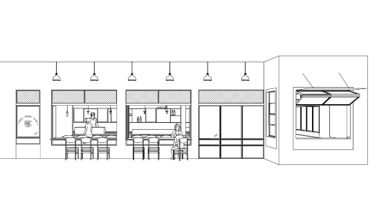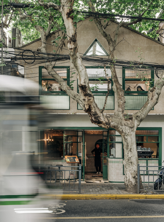 A:一是我和我的合伙人比较信风水,这样似乎风水好一点(笑);二是,这样可以做外摆整个店的展面会非常宽,能够让顾客一眼看到我们店内的情况,同时拉近了店外和店内的空间。后来也确实证明时我们的决策是对的,比如我们很多家庭顾客在周末过来吃早餐,小朋友可以在院子里玩,骑自行车、滑板车什么的,而且离家长也不会太远。