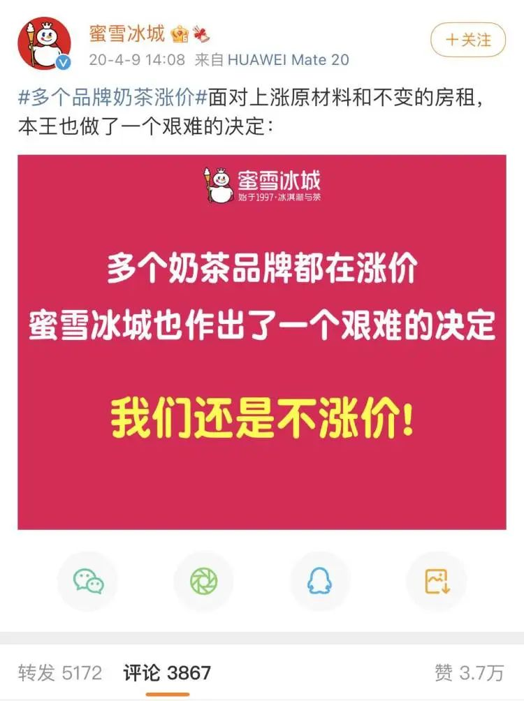另一方面,蜜雪冰城在一些时候的无畏坚持也让加盟商非常无奈。比如在2020年,由于原材料价格上涨的压力,喜茶、奈雪的茶曾选择上调价格,但蜜雪冰城却坚持不涨价。蜜雪冰城这一涨好感的出色营销,后果只能由加盟商买单,进一步压缩了后者的利润空间,也直接导致了类似使用隔夜食材问题的出现。