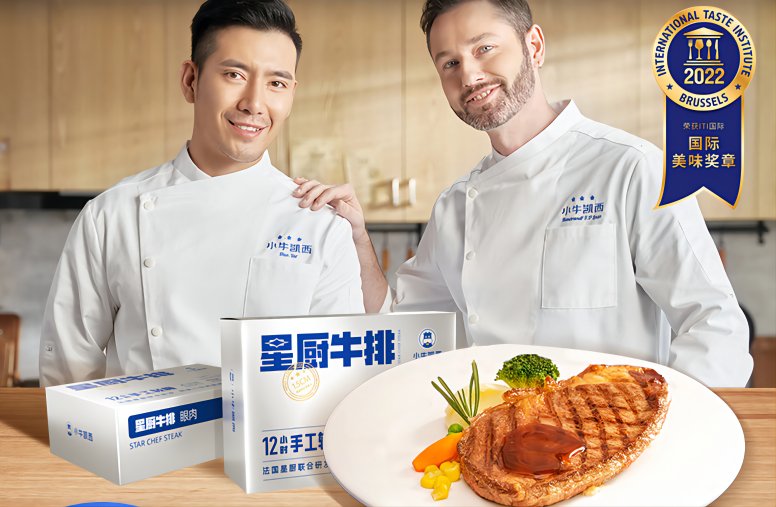 所以针对目前原切牛排市场存在的问题,小牛凯西推出了「星厨牛排」系列,扩充其在中高端牛排市场的产品布局。星厨牛排是在原切牛排的基础上完成预烹饪处理,从而解决其在烹饪上的难点和不便。