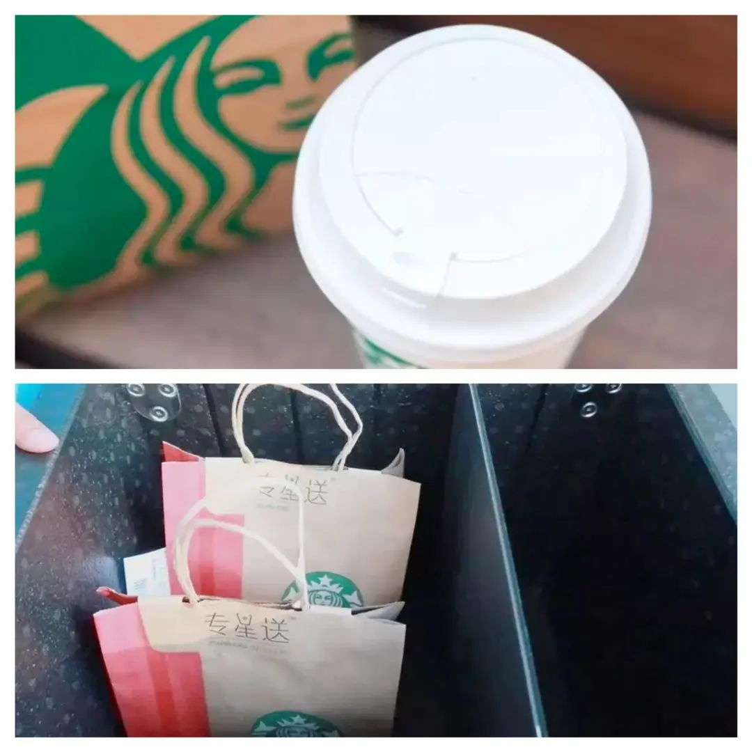 为了解决外送服务中的饮料泼洒问题,星巴克设计了外送专用的冷热饮杯盖,咖啡即使经过旋转也不会洒出来;而骑手的外卖袋也有讲究,用了特制的冷热分离保温箱,如果消费者同时点了热咖啡和星冰乐,收到外卖时会发现两杯饮品的温度并没有互相影响。