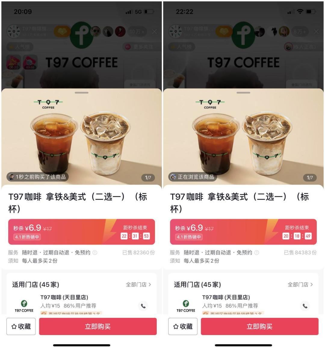 如何给一个10万+的抖音直播间估值,是一道难倒众多证券分析师的问题。在东方甄选董宇辉老师爆火之后,其公司股价从3元一路来到了30元价位区间,同时公司市值也从30亿达到了今天的307亿。同样在印证抖音直播间神奇的还有趣店罗敏,预制菜一日直播拉动公司股票40%涨幅,成交量数亿美金,而细看下来,这次让无数绝望中的中概股看到了希望的直播,除了在抖音之外,似乎也没有太多特别。多名券商分析师坦言,除了情绪之外,这样的暴涨更多是对抖音以及字节跳动相关价值的外溢。能成就10万+直播间的,除了一线企业之外,还有各路明星,其中的典型代表是张柏芝、汪峰,对于他们而言,带货一场的收入业内估计也均超过数百万规模。总体而言,10万+在线人数的抖音直播间,在当下抖音生态,确实是稀缺产品,而更令投资人疯狂的不仅是带货GMV,或是主播的天价收入,更多的是其在商业上无穷的想象力空间。正是在此背景之下,当T97咖啡直播间成为顶流时,幕后老板李潇也激动的连用9个感叹号,表示了35个月做到中国咖啡全行业第一的决心。而在另一条点赞量极高的短视频中,李潇也表达了要干掉瑞幸咖啡的决心。“我明确地告诉你们,我根本没有把瑞幸放在眼里。”在T97咖啡直播间,大嘴女主播夸张演绎以及喊麦式叫卖是其标志性特点,T97爆红后,西少爷等多家直播间开始了模仿,而个性化的主播对于一个纯粹以带货为主的直播间来讲,热度似乎注定会逐渐消退。当然,热度的消退并不意味着没有商业价值,以东方甄选为例,即便在热度下降的时期,其单日销售GMV也可达到2000万之上。售货量依旧是考量一个直播间是否有价值的关键表现。那么,从数据观察来看,T97咖啡在直播间的销售额,可以用那句“人红歌不红”来形容。T97每日销售额非常有限。以2022年10月13日晚上为例,T97咖啡8点左右开播,销量最大的引流产品6.9元的拿铁销售量为82360份(累积销售),而此时直播间在线人数已经超过了8万+,而到晚上10点时,直播间在线人数依旧为8万+,累积销售量为84383份,销售了2023份,销售额为13958元。而这2023份咖啡,平均到45家店,每家可以分到45份。当然,除了引流产品,T97咖啡依然有许多其他品类产品,如销量第二名的生椰拿铁,但细算下来,每日400余份的销量,都不足以成为下一个瑞幸。单店销售不足百杯(45杯)是什么概念,根据平安证券研究所的计算,避开财务造假阶段,在2021年,瑞幸咖啡已经开始涨价的前提下,以15元为平均价格,瑞幸单店出杯量为350杯左右。从这个数据来看,显然T97咖啡与瑞幸不可同日而语。另一部分T97咖啡的价值,来自于抖音用户对于头部主播的情绪价值的衡量。在一次采访之中,李潇团队表示,“大嘴妹不会凉,我们观察刘畊宏等人的直播间也会发现,在到达峰值之后,人气会走低,但是,也会有不少的留存者。”对这一部分价值的估算,并没有太多精确的样本可以参考。人们进入直播间被大嘴妹吸引,但下单者不多,同时,线上直播间与线下店之间的联系非常弱,如果T97咖啡仅仅是把赌注完全压在了一个爆款直播间上,风险性不可谓不大。