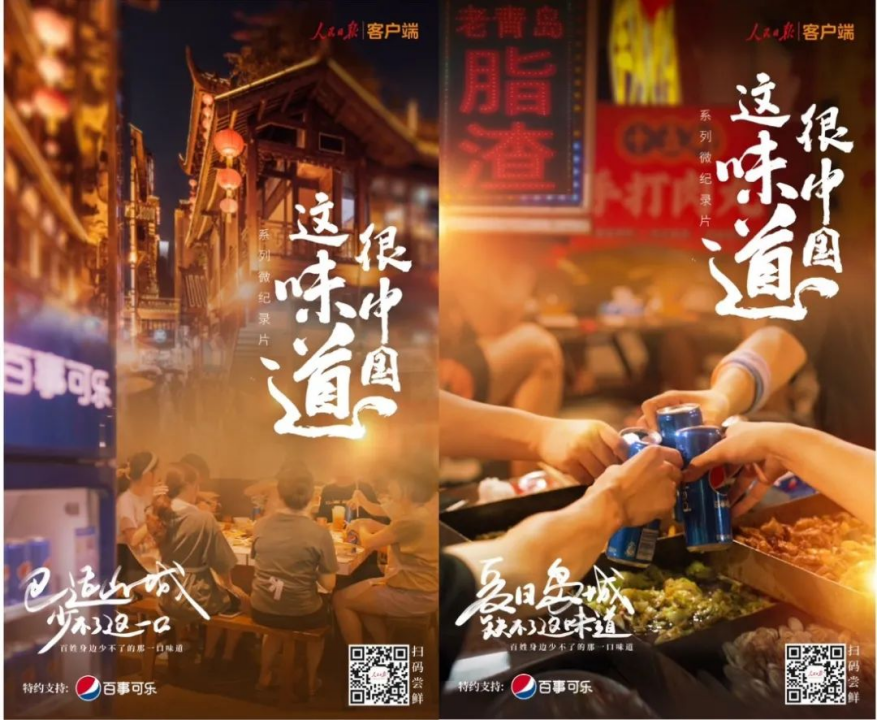 值得一提的是,作为“地道美食观”的延续,百事可乐携手《人民日报》“这味道很中国”IP推出了两条微纪录片,深入重庆、青岛寻找出榨菜、脂渣两味极具特色的地方小食,共鸣年轻人“爱吃更要懂吃”的美食追求。