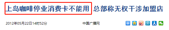 结果大批上海上岛咖啡加盟店倒闭,极大地影响了上岛咖啡的影响力和声誉。