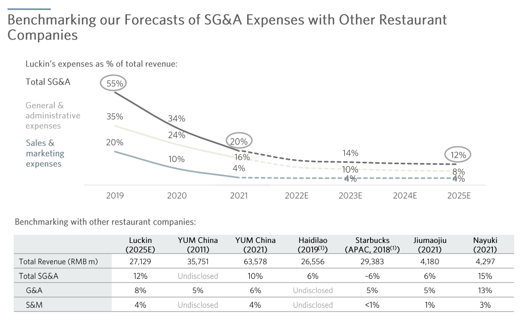 雪湖预计2025年瑞幸的管理+销售费用率之和仅为12%,2021年为20%。压降成本的主要手段雪湖认为是在其APP的开发与使用上。据雪湖称2022年7月,瑞幸自身的APP贡献了总销量的55%,在未来,这将降低瑞幸的销售费用率。同时由于APP已经开发完成,后续相关研发投入将会减少。2019年瑞幸的技术开发员工人数为1049,2021年为436。之前的技术积累,已经成为瑞幸看不见的无形资产,而这在未来也会进一步释放利润。最后,随着瑞幸规模扩大,总部的管理成本也会进一步被分摊。观点六:壁垒