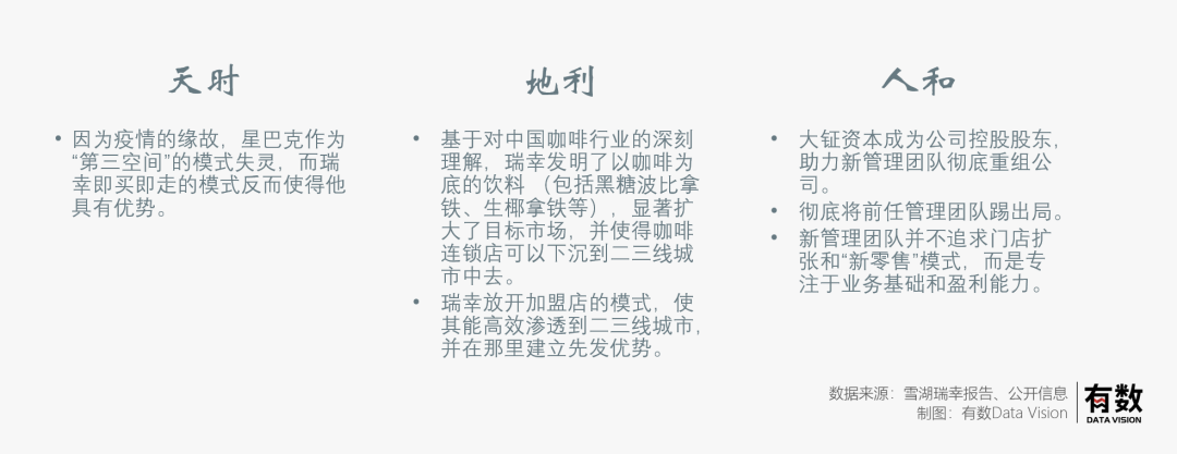 11月7日,雪湖资本创始人发布了一篇瑞幸咖啡的研报,全篇重点就一句话:雪湖上一次出名,还是2020年浑水做空瑞幸时,市场广泛认为雪湖是其背后的合作伙伴,如今才短短两年时间,在瑞幸市场口碑一片大好之时,高调发布研报旗帜鲜明地大举唱多瑞幸,估值直逼星巴克。且不提正确与否,我们来尝试理解一下雪湖看多瑞幸的思路。开局一句话,瑞幸占尽了天时地利人和,优势在我。翻译翻译:随后,雪湖从市场、门店、扩张、加盟、降本、壁垒六个角度,全面阐述了它为何今天看好瑞幸咖啡。