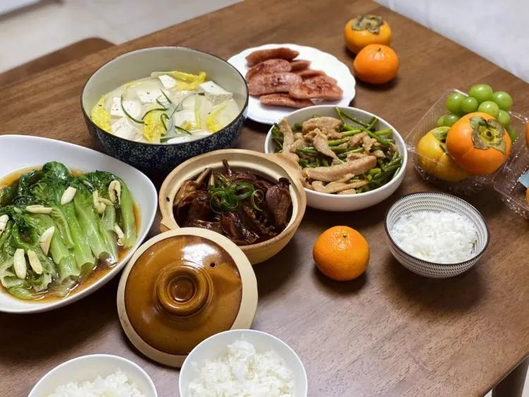 最终,在咖啡店认识的顾客W邀请她固定下来做饭,一来她是独居女性,下班吃饭时间和自己的时间吻合,另外她对菜系没有要求,好吃就行,再加上两个人也能吃到一块去,一拍即合,她定下来一周去W家做饭3次。美食讲究时节。她总会根据节气和时机来做菜。立冬吃牛腩萝卜煲、腊八煮八宝饭,会友的日子,做北方的卤牛肉、子姜鸭。在南宁做土木工程的朵草,最近也开始接上了上门做饭的单子。相比起华帅做个人固定的单子,朵草承接的是团餐业务,一次性做6到10个菜。她的菜单看起来十分浩瀚,几乎涵盖各种菜系,桂菜、粤菜、东北菜、东南亚菜、川湘菜,白切鸡、白切猪脚、油泼鱼 、水煮鱼、冬阴功,常见鸡鸭鱼猪牛海鲜都有,几乎涵盖“海陆空”。
