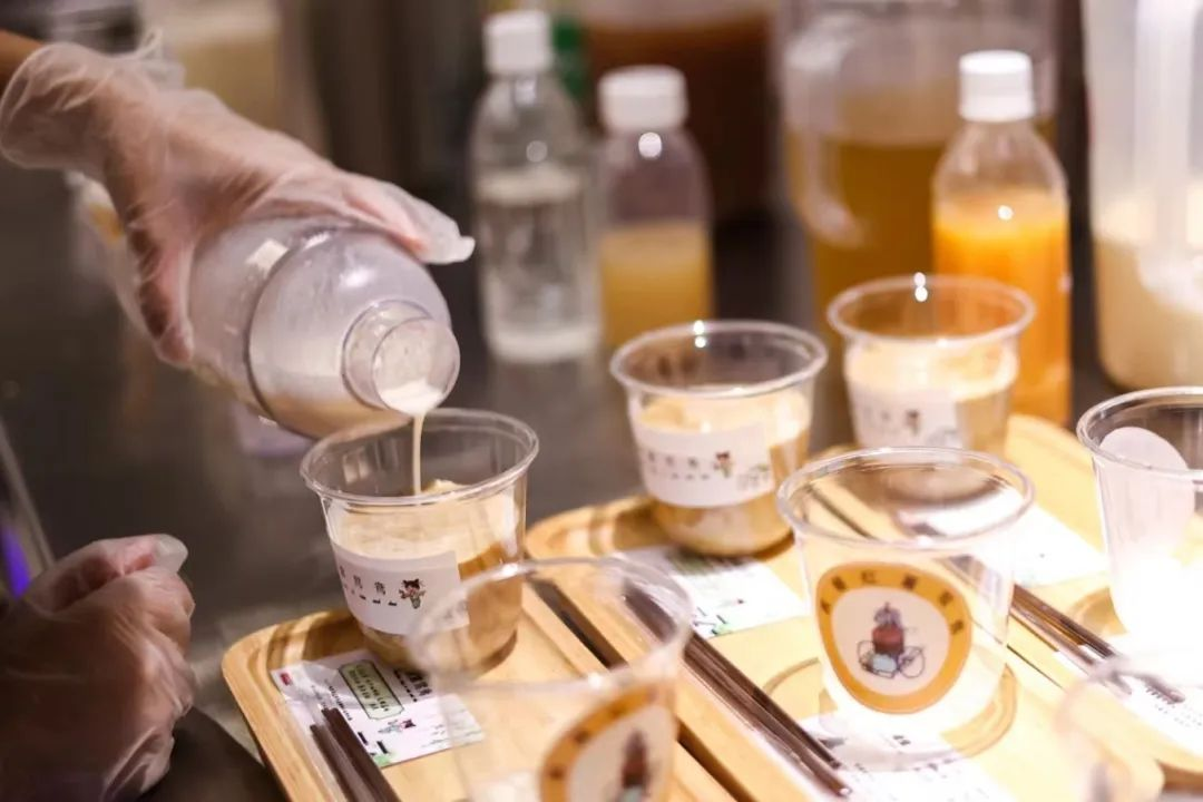而亚军选手苏可欣的参赛作品“雨露鸳鸯”,将黑白牛奶与茉莉绿茶融合做成基底,搭配龙眼和荔枝凸显产品的果香。