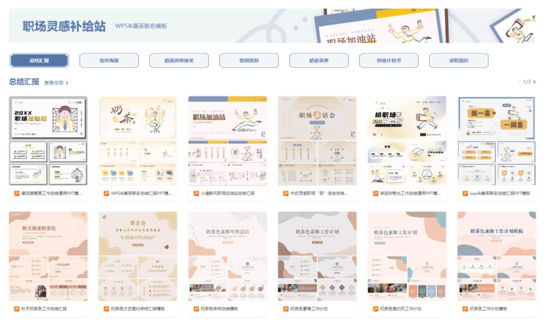 值得一提的是,11月14日起,以“阿喜”为主的喜茶素材正式入驻WPS稻壳儿商城,进入WPS稻壳儿模版库即可免费使用喜茶素材,包括多款模板、图标、免抠素材等,为PPT注入有趣灵感、无限活力。