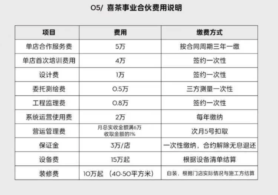 据喜茶介绍,事业合伙门店预计毛利将达60%。