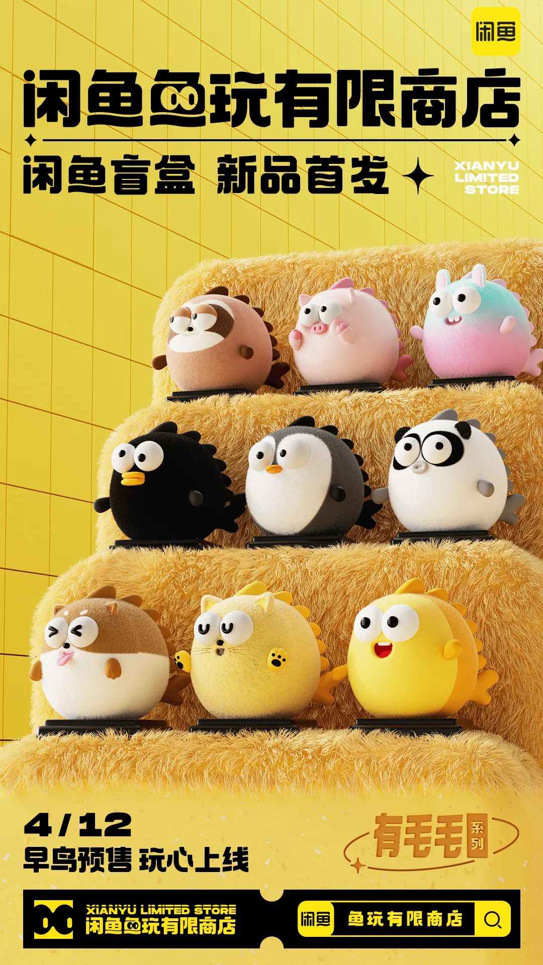 近日,「闲鱼鱼玩有限商店」正式营业,闲鱼为其品牌形象推出可爱到长毛的「有毛毛」闲鱼盲盒系列,闲鱼分别以小猪、柴犬、熊猫、乌鸦、树懒、猫咪、兔子等动物为原型,在闲鱼「鱼」的原型基础上打造了多款盲盒形象,以趣味形式重新演绎了品牌的 IP 形象。同时,闲鱼的「好奇怪」系列也即将发售,在闲鱼的「正常属性」之外探索出更多新形态。