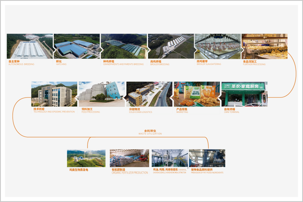 也正是沿着这条路,圣农集团以产业集群的方式,打造了一条从育种到下游食品深加工再到终端消费者的全产业链。通过用工业方式做农业,圣农拥有了6亿羽白羽肉鸡产业集群,以期实现高投入、低风险、高产出的规模化科技农业。