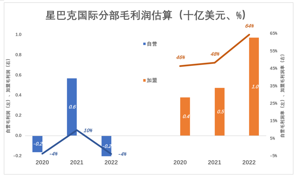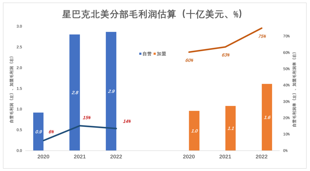 星巴克披露的信息有限,但仍可粗略估算自营、加盟各自的毛利润。