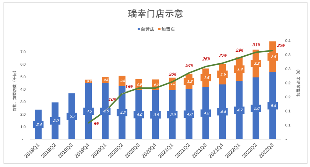 2022年9月末,加盟店达2473间,占门店总数的32%。