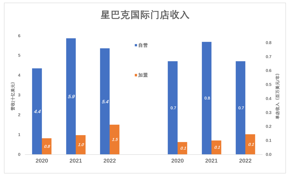 2022财年,国际业务加盟店每月带给星巴克的收入仅为1.2万美元(折合人民币8万元)。