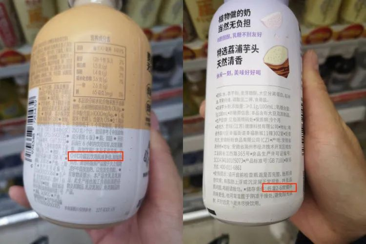 与此同时,新周刊记者在某些热饮的瓶身处发现,“瓶中悬浮物和沉淀物来自茶和乳成分,请放心饮用”的提醒字样。