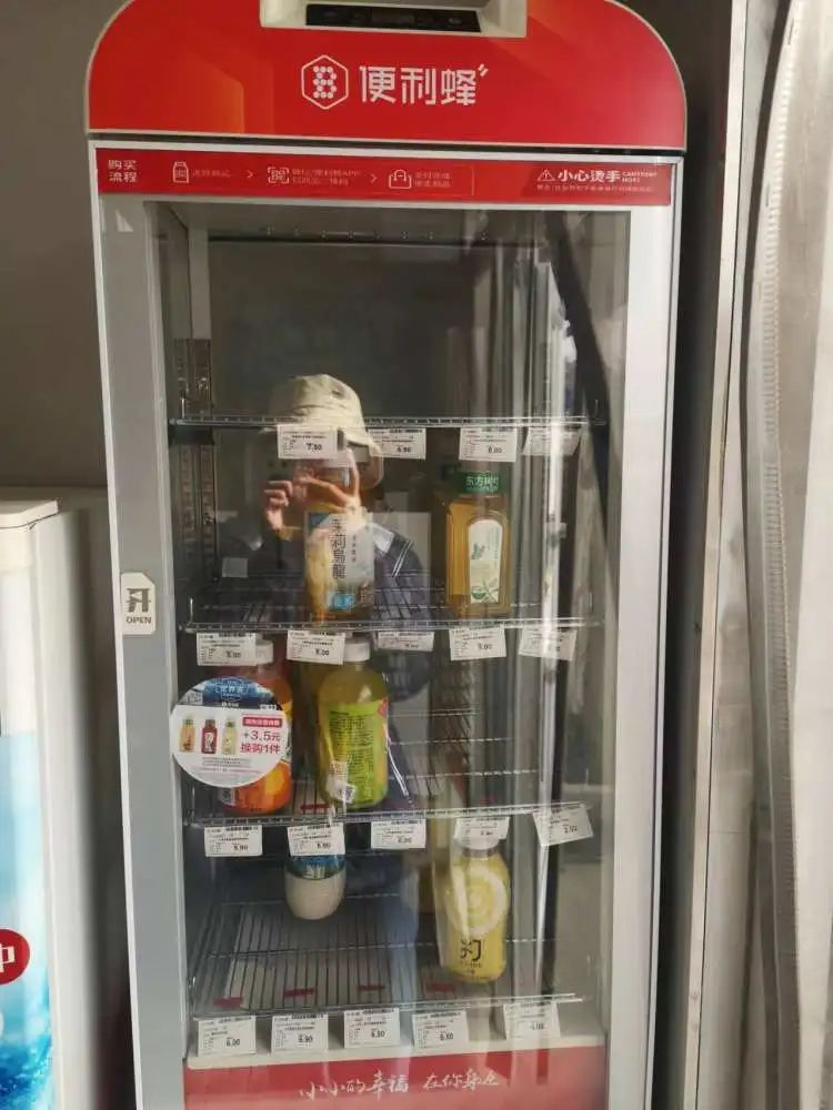 北京昌平回龙观附近的便利蜂,在店内入口处添置了小型的封闭式暖饮柜。据店员介绍,综合考虑店内面积和其他需低温保存的产品销售,店内未放置大型的热饮货架。“不影响正常销售,卖得好的都在这里”。据介绍,如果货品充足的话,该暖饮柜可以摆放近20种饮品。