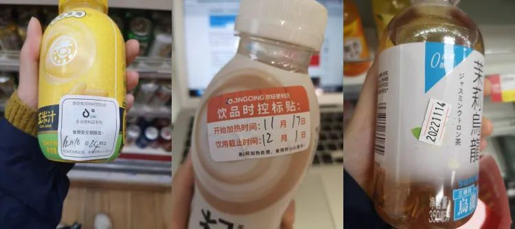 “时控标贴”和日期码,方便店员及时清理过期热饮。/新周刊记者 摄