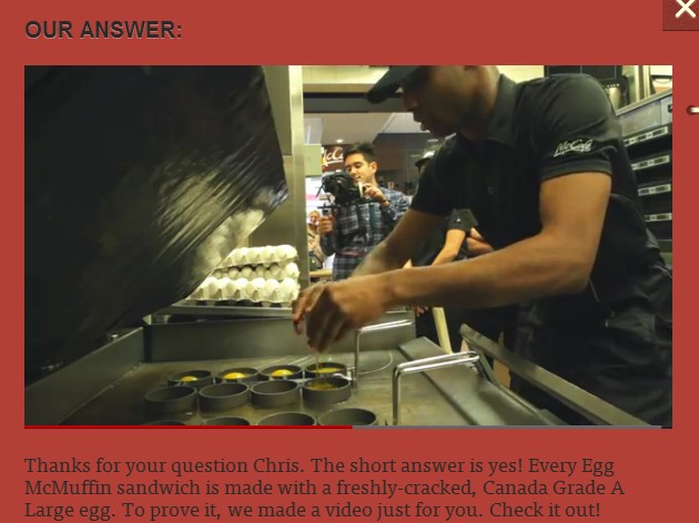 这种问题在社区中很多,这些看似尖锐但是消费者真正关心的问题,麦当劳都处理的非常好,比如为了说明这个鸡蛋是真的鸡蛋,他们也为此拍摄了一段视频,自揭老底把鸡蛋松饼的制作过程都拍摄下来。