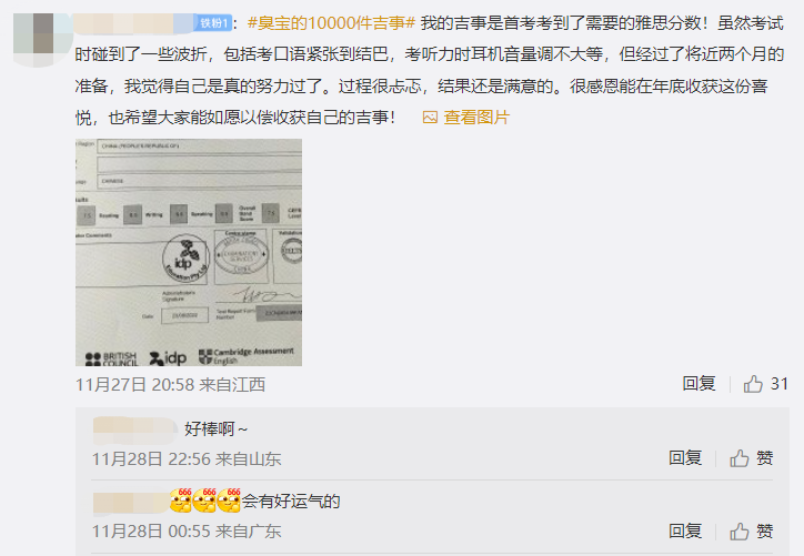 联名期间,双方发布话题#臭宝的10000件吉事#,收到了大量消费者真实的内容反馈,如「吃到爸爸妈妈做的饭才是最大吉事」、「在被拦截的短信里看到面试成功通知」,这些真实流露的情感也引发其他网友的共鸣转发。