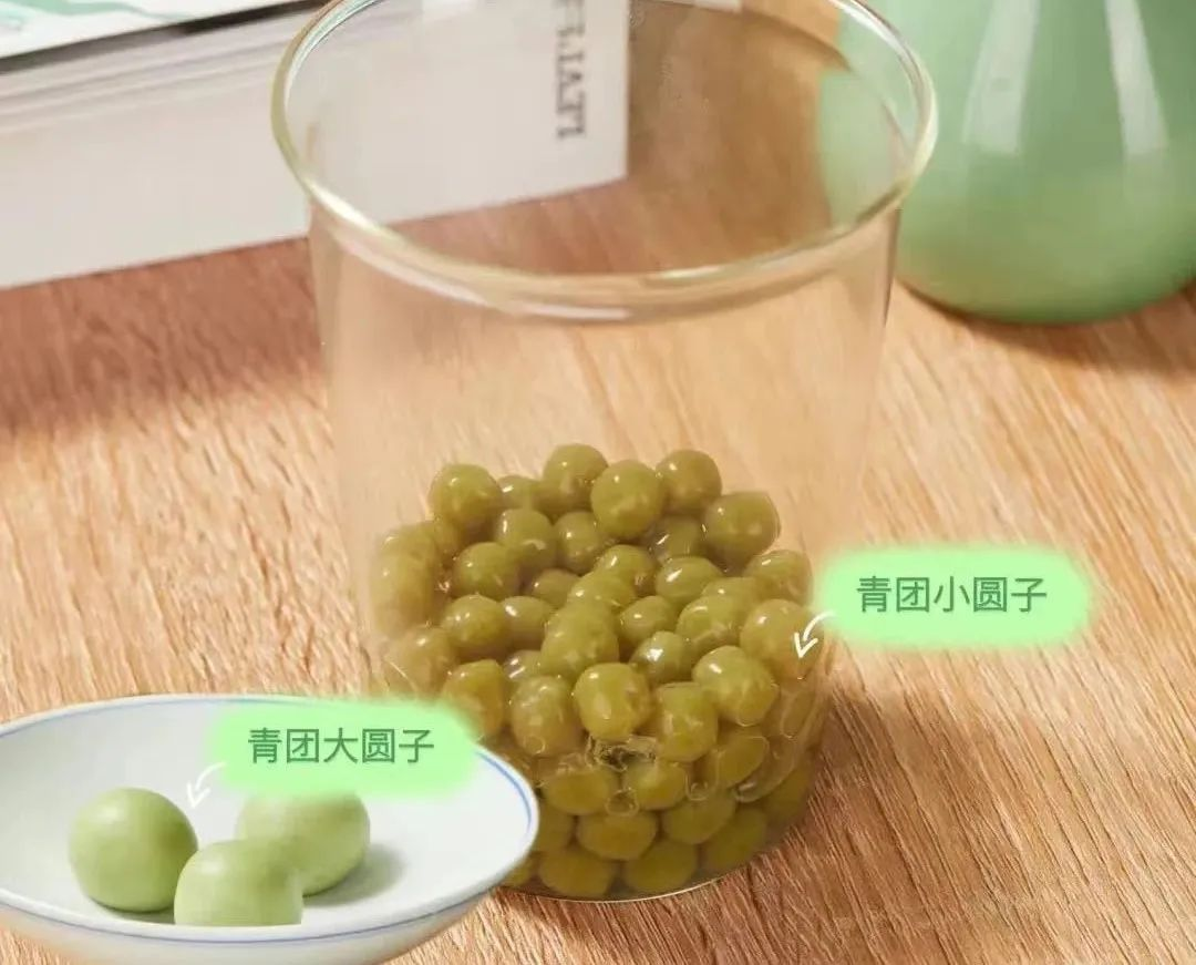 另一方面表现在形态上,同样一种小料,升级出新的呈现和形式。比如前两年开始流行爆珠类产品,把料包裹在晶球中,增加口感的丰富性。这个冬季,着重增加五谷小料的固形物含量,喜茶在芋泥中加入芋头丁,还有品牌在麻薯中添加糯米颗粒等。