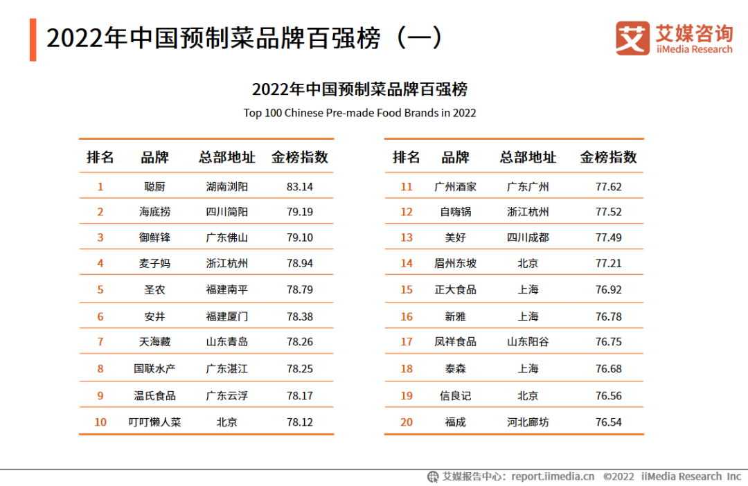 1.“艾媒金榜· 2022年中国预制菜品牌百强榜”评价模型说明