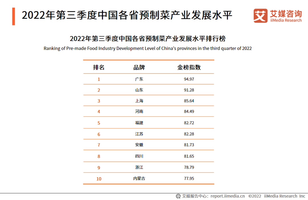 广东、山东、上海预制菜发展水平蝉联榜单前三,内蒙古首次进入榜单前十