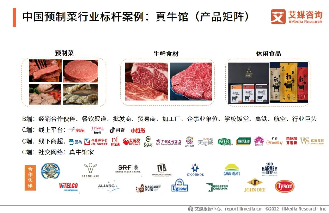 真牛馆旗下产品分为预制菜、生鲜食材、休闲食品三大类,并不断对产品品类进行创新,打造全产品矩阵。从高端牛肉进口商到预制菜生产商,真牛馆全国布局5个大区销售公司,服务超3000家品质餐饮品牌,与全球14个知名品牌达成战略合作。形成集原材料、生产能力、新产品研发、线上线下渠道等为一体的供应链整合和成本控制优势。