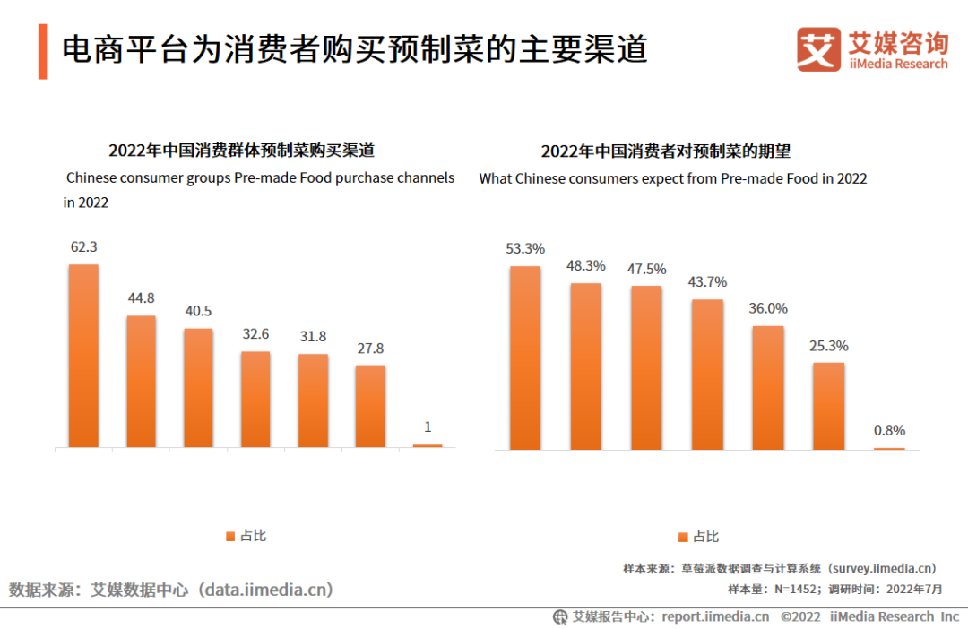 随着预制菜的持续走热,其“免洗、免切、免调料”受到消费者青睐,平台成企业的新增长点,预制菜的未来走向可见一斑。艾媒咨询分析师认为,电商平台覆盖的预制菜品类不断拓宽,消费者线上消费习惯日趋养成。从各平台数据来看,在春节、国庆等节假日期间,预制菜销量会出现明显增长,反映出预制菜消费存在一定的节日属性。