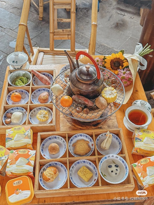 围炉煮茶除了热饮,丰富多样的能烤食的小物也是其必不可少的元素。“茶饮+茶点”、更为延伸的“饮品+点心”的产品组合形式值得关注。以围炉煮茶作为场景,品牌或可推出具有冬日特色、新中式风格的组合套装产品,不仅在口味上发掘中式风味、冬季时令风味,还要注重产品内核表达与外形审美,用热门场景触达消费者、用审美风格破圈消费者,用情绪价值打动消费者,用风味口感留住消费者。