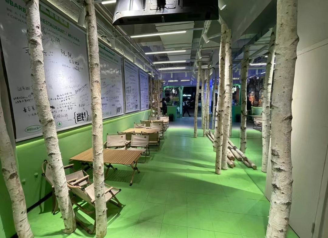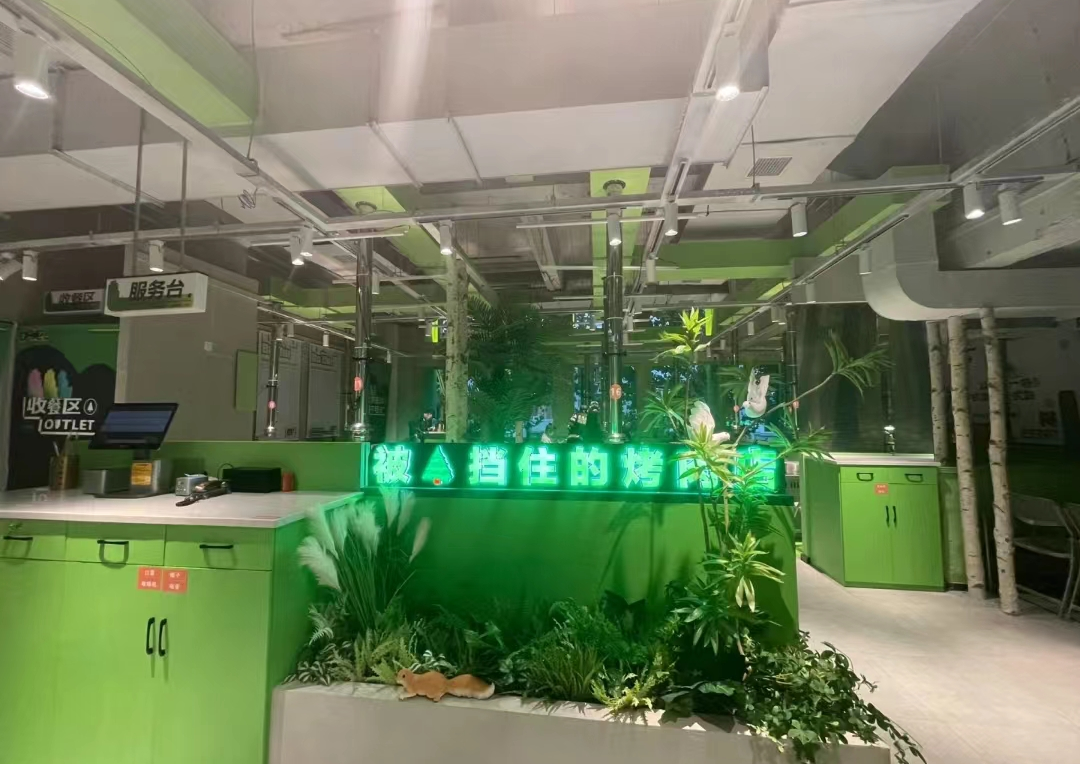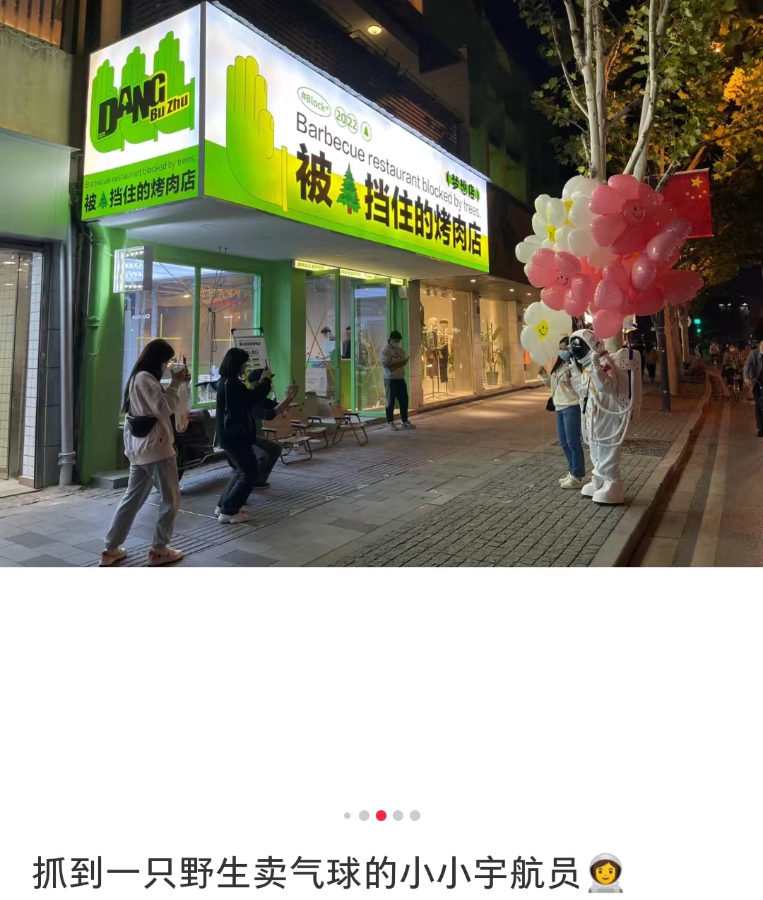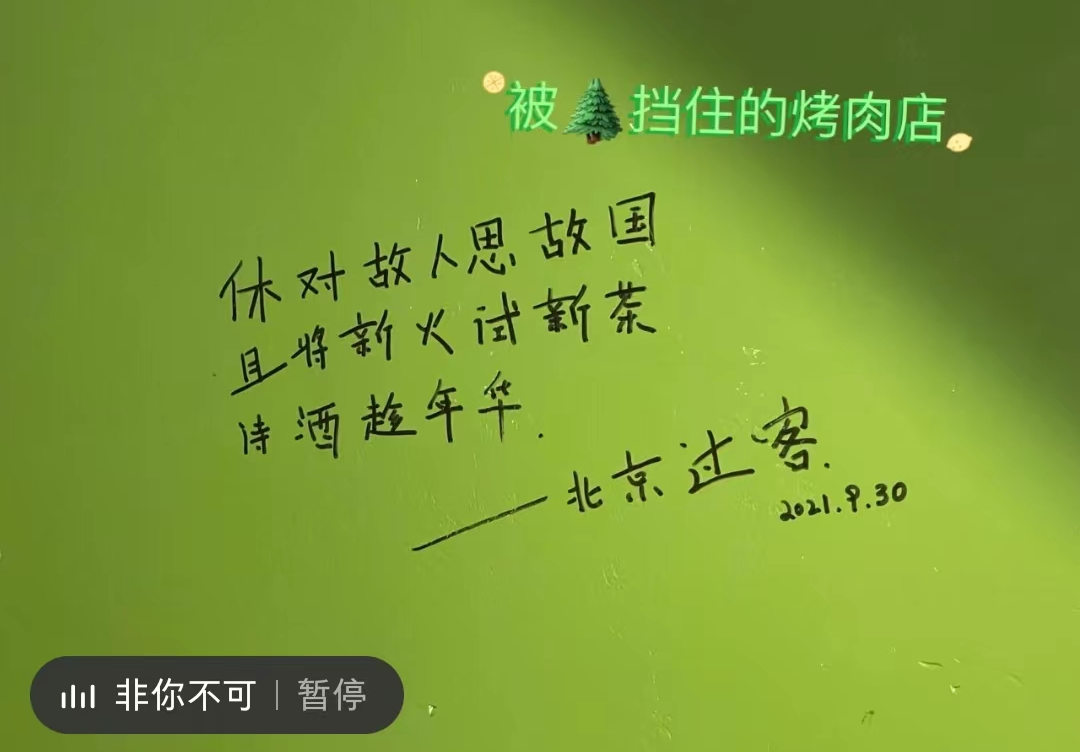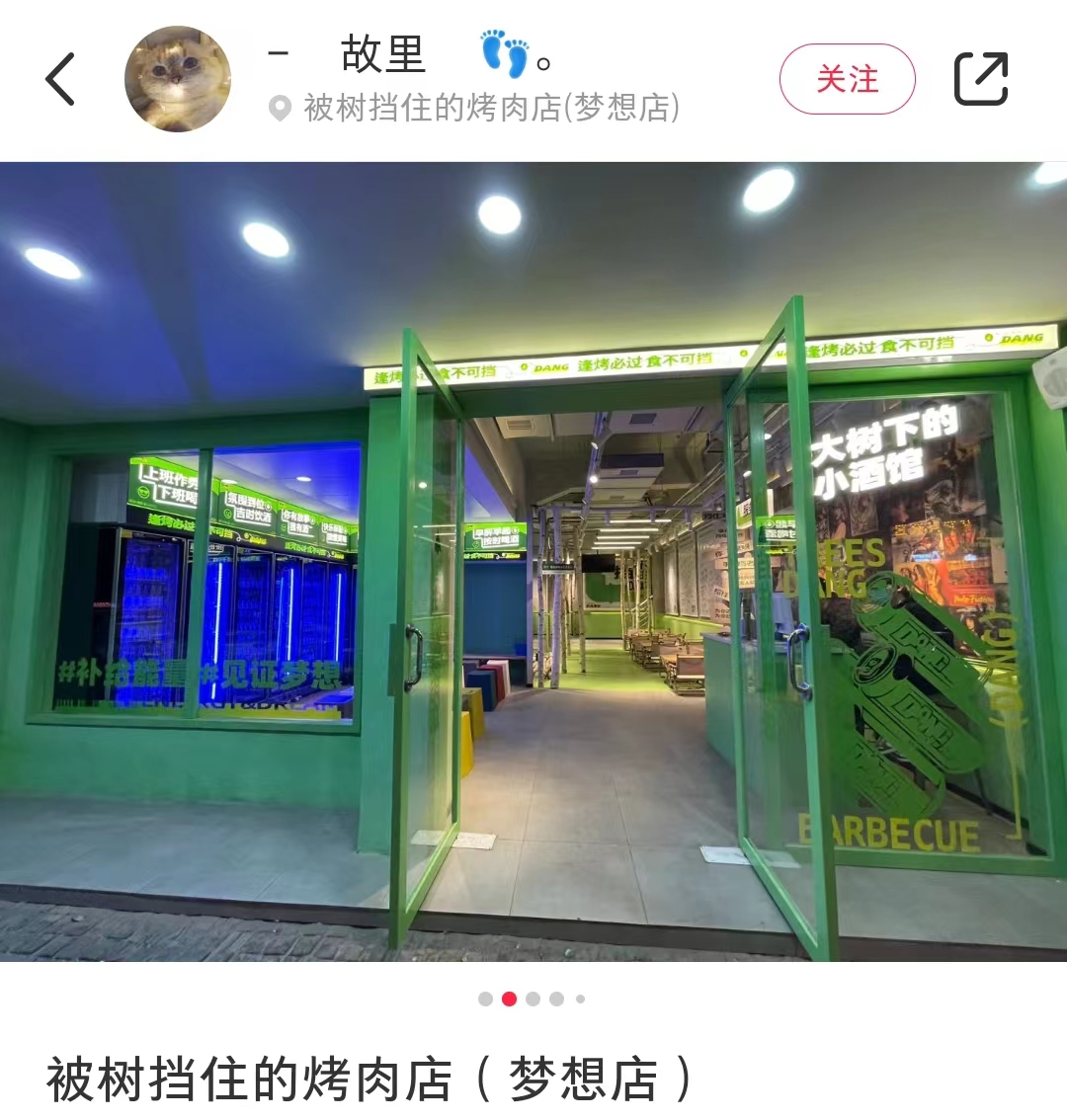 因为店的选址在一棵树的后面,让新来的客人总不太容易找,于是店家就把店的名字改成了“被树挡住的烤肉店”。