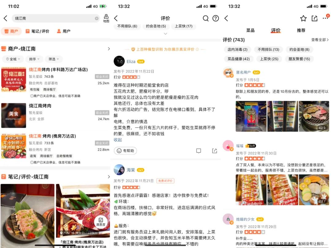 在大众点评上,2021年位于长楹天街的门店已经无法查到,另外两家门店显示歇业关闭,从评价上看,最新评论停留在了2022年11月份,评价的数量不算多。