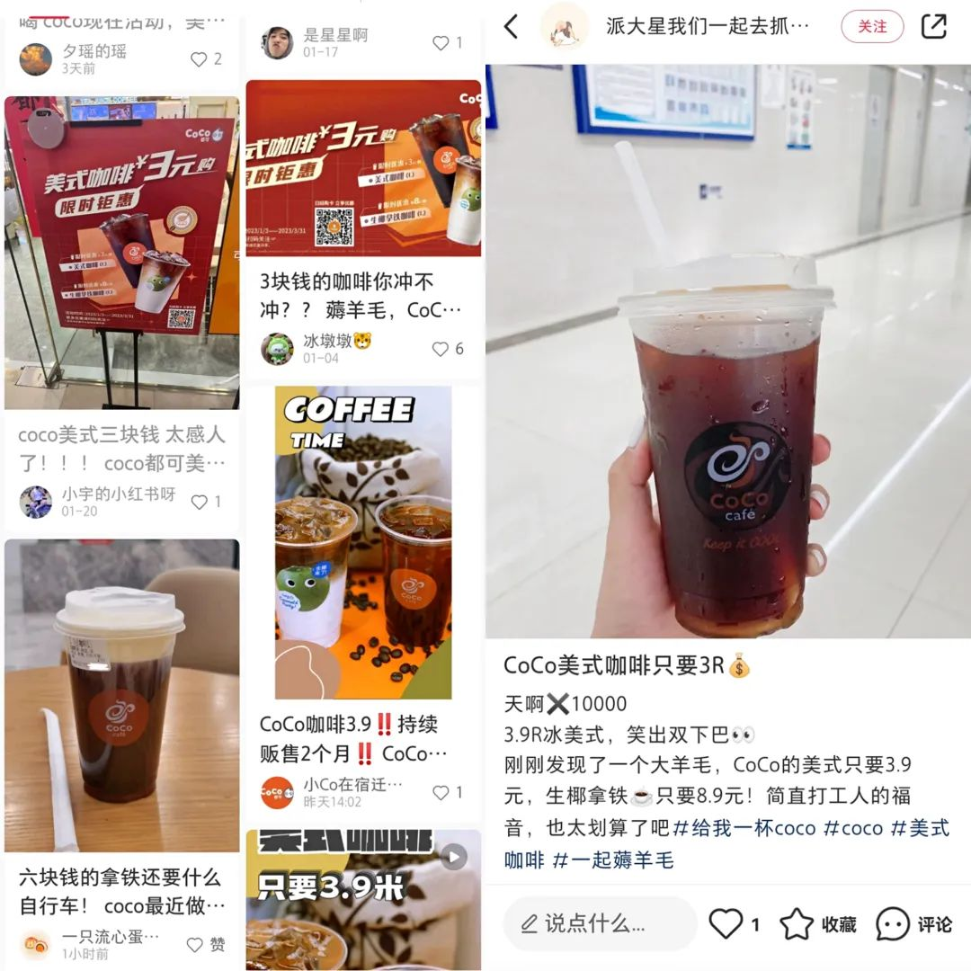 小红书上,打响这场开年价格战的,是茶饮品牌CoCo都可。2月1日起,CoCo宣布全国范围内的降价:现磨美式3.9元,生椰拿铁8.9元,活动将一直持续到3月31日。