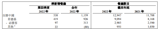 西式快餐品类方面,相较于“哀鸿一片”的市场,百胜中国不降反升。2月8日早间其在港交所公告,2022年第四季度,总收入为20.9亿美元,较去年同期的22.9亿美元下降9%。经调整净利润增长至5,200万美元,去年同期为1,100万美元,同比增长376%。