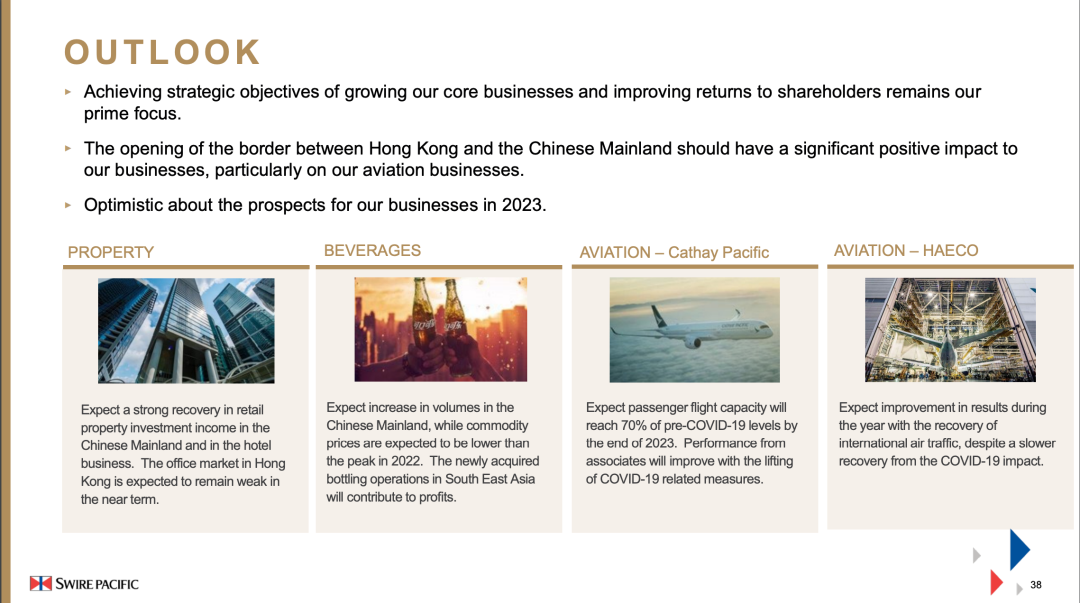 “香港和中国内地已停止实施防疫措施,而香港与中国内地已全面通关。凡此种种,均会为集团业务带来重大的正面影响。”他说。