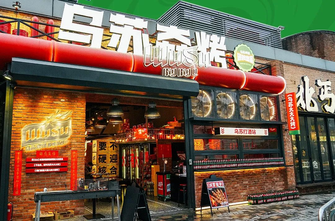 在此背景下,乌苏啤酒于去年底推出了官方烧烤啤酒店——「乌苏𡘙烤」(又称乌苏大大大烤),打造消费者深度体验乌苏品牌和产品的聚会场景。首店选址上海静安大悦城北座顶楼,今年2月上旬正式开业。