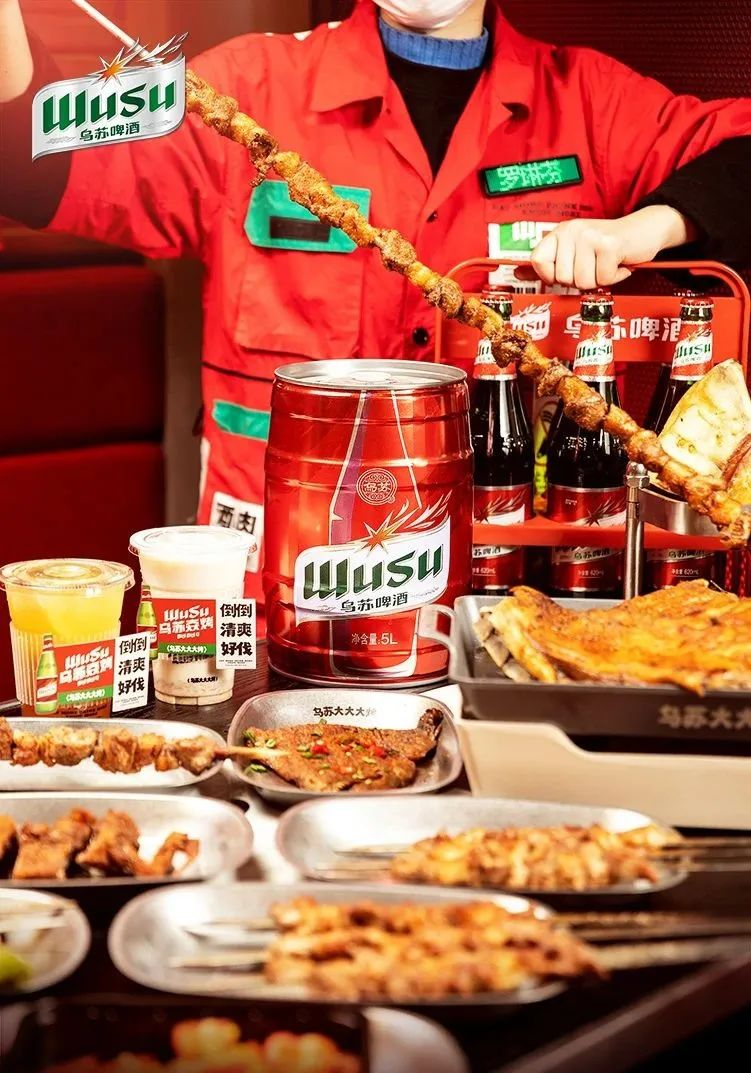 不难看出,通过强化重庆火锅与重庆啤酒这对CP组合产生品牌叠加效应,重庆啤酒走出地域限制向全国输出变得更为省力且有效。这两年啤酒赛道的黑马品牌「乌苏啤酒」诞生于新疆,凭借更烈的口感、更高的酒精度、更馥郁的啤酒口味,因“后劲大、易上头”被网友戏称“夺命大乌苏”,并经由社交媒体的助力破圈走向全国。