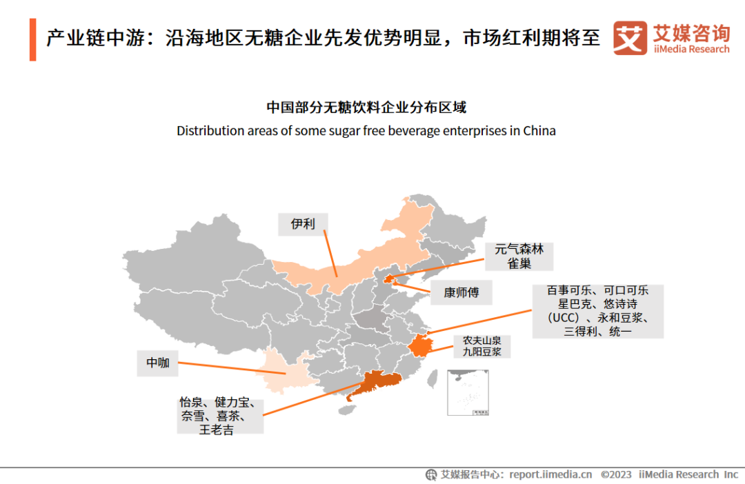 产业链中游:沿海地区无糖企业先发优势明显,市场红利期将至