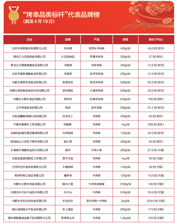 今年3月,“淄博烧烤”相关话题冲上热搜榜之后,淄博当地烧烤市场人声鼎沸。据悉,淄博有的烧烤摊一天要接待200多桌顾客,算下来一天要烤12000多串烧烤,平均每位师傅要多烤3000多串;在某购物平台热搜榜上,“淄博烧烤”一下跳到前三位,4月第3周上升了119%,相关宝贝数量突破了1600件。从这巨大的数字背后,我们可以看到,步入春夏时节,烧烤市场迎来发展的高峰期,烧烤串产品进入热销季。