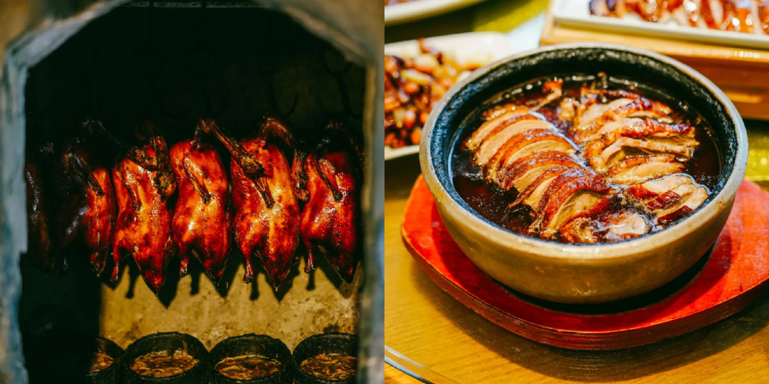 比如成都张烤鸭就宣称在用土灶的烤鸭方式,活鸭宰杀手工制鸭胚。冒烤鸭是用石锅承装,现场淋汤,卤水被高温激沸,15分钟后汤汁浸透鸭肉。充满仪式感。