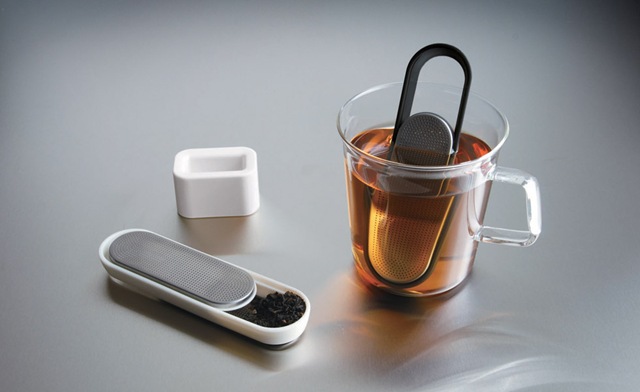 其实它就是一个带了孔的盒子,而这个盒子能滑动而已。但其实就是这么简单的设计却让你看到它的与众不同。简单又方便,倒茶渣的时候轻轻一划就okay,这滑动真像极了解锁。高大上的它还有专属底座,相当cool。但是还有点估计设计师没有考虑过,那就是白色的用久了铁定会被茶叶侵蚀颜色哦。