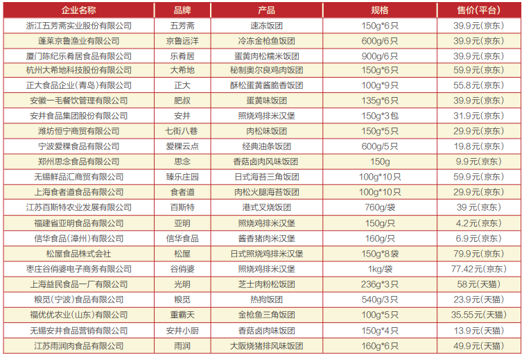 饭团是日本传统食品,主要食材是米饭,配料有生鱼片、海苔、黄瓜等,制作者可以通过自己的喜好来添加配料。1970年,便利店在日本出现以后,饭团便成为该渠道内最重要的商品之一,直至今日,饭团依旧保持这个地位。近年来,在便利店热潮的影响下,加之电商平台冷链物流产业的加速发展,饭团在我国逐步发展起来,据此衍生出来的米汉堡、糯米鸡等中式饭团产品也十分丰富,口味更加多元。