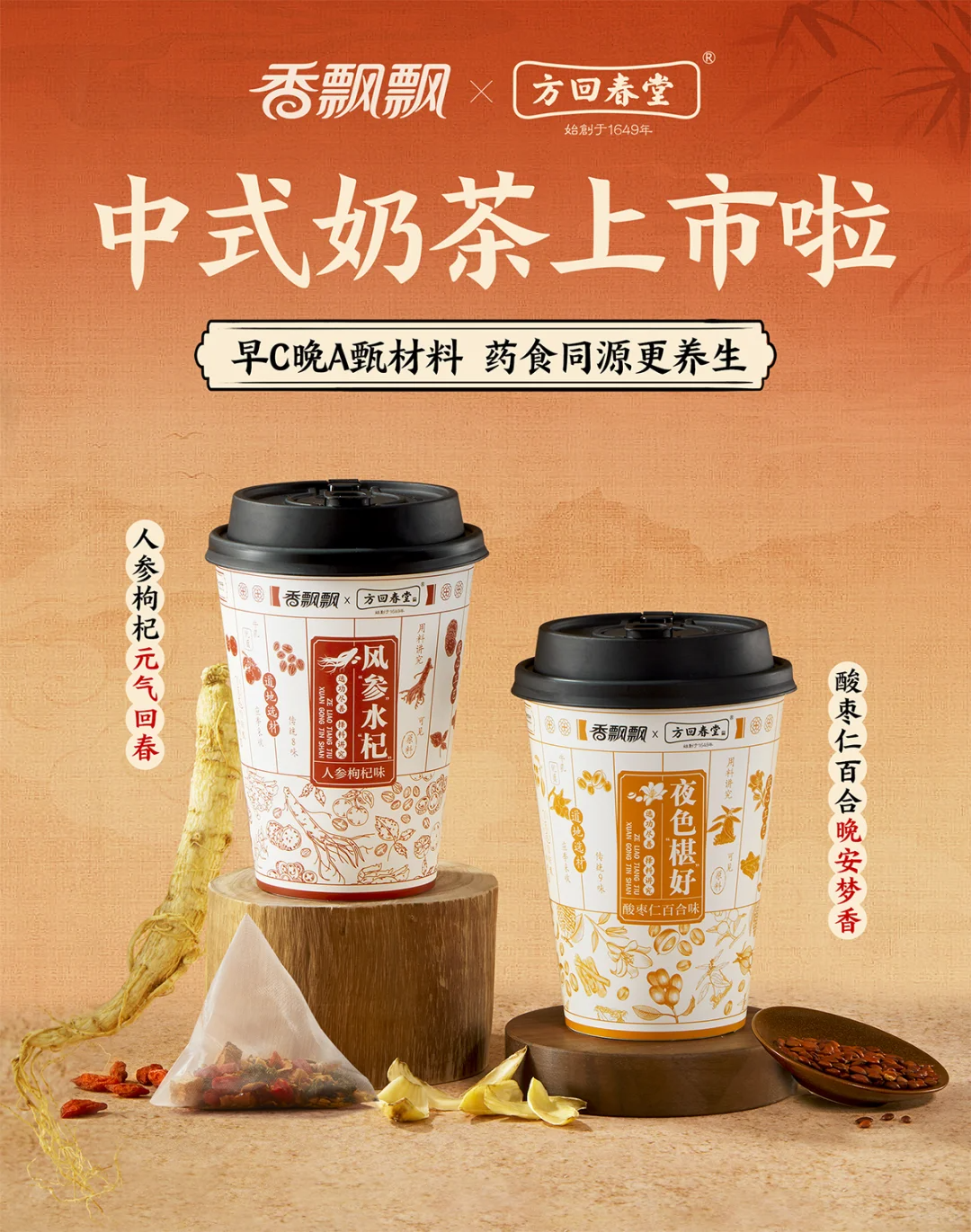 与此同时,香飘飘不忘初代老用户的养生需求,推出“加中药的奶茶”。