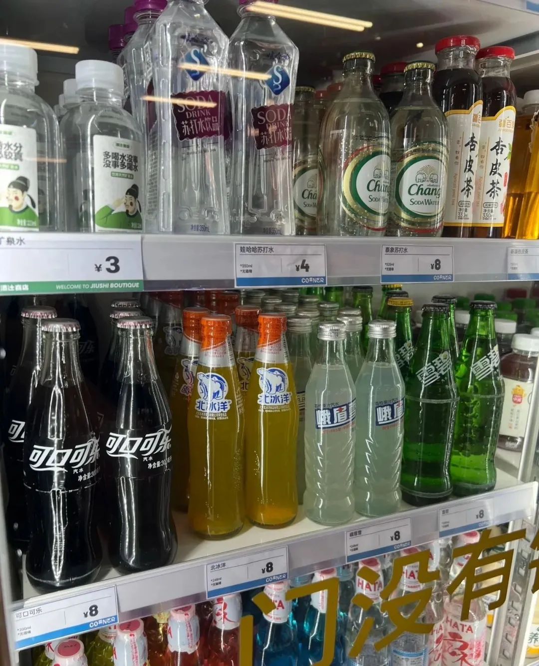 在超市的饮料货架上,一排五颜六色的玻璃瓶装汽水整齐排列,标签上复古的字体与鲜艳的配色形成了微妙的平衡,不禁又将人拉回到了那段泛着暖黄色灯光的记忆中,但还来不及感慨,看一眼价签,就瞬间清醒了。