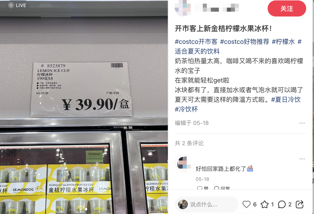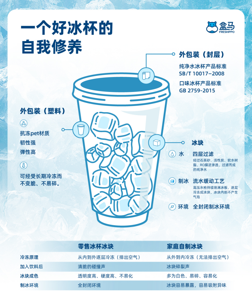 除了农夫山泉外,COSTCO、盒马鲜生、饿了么、奥乐齐,也都做上了冰杯的生意。其中,盒马冰杯系列商品今年6月同比增长30%,咖啡冰杯同比增幅达60%;饿了么6月中旬数据显示,冰杯下单量相较去年已实现翻番。